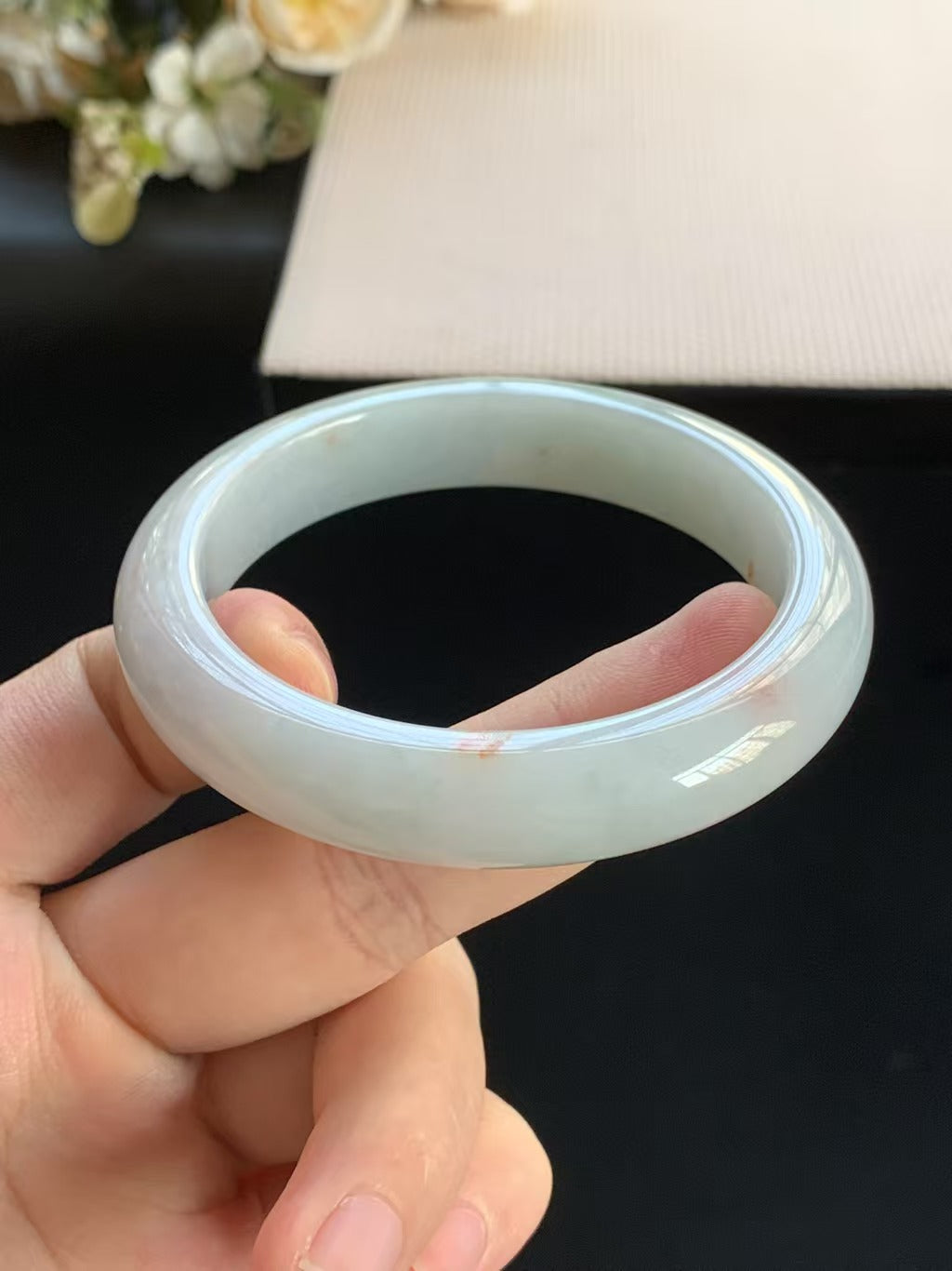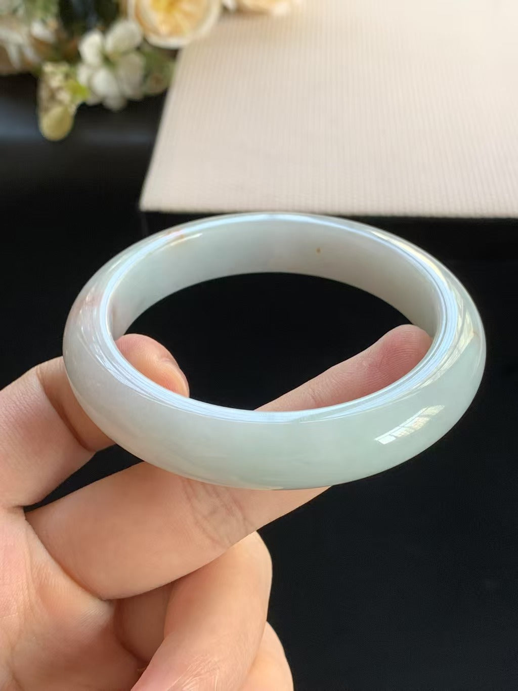 冰细糯淡绿桂花糕翡翠正圈 尺寸57-12.2-8.8,完美