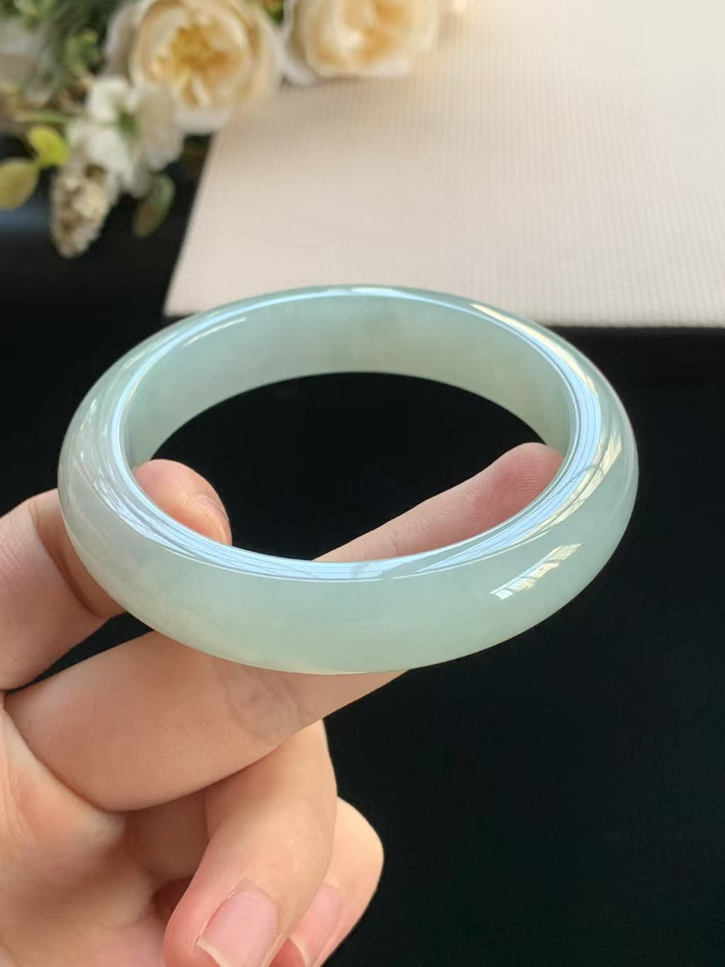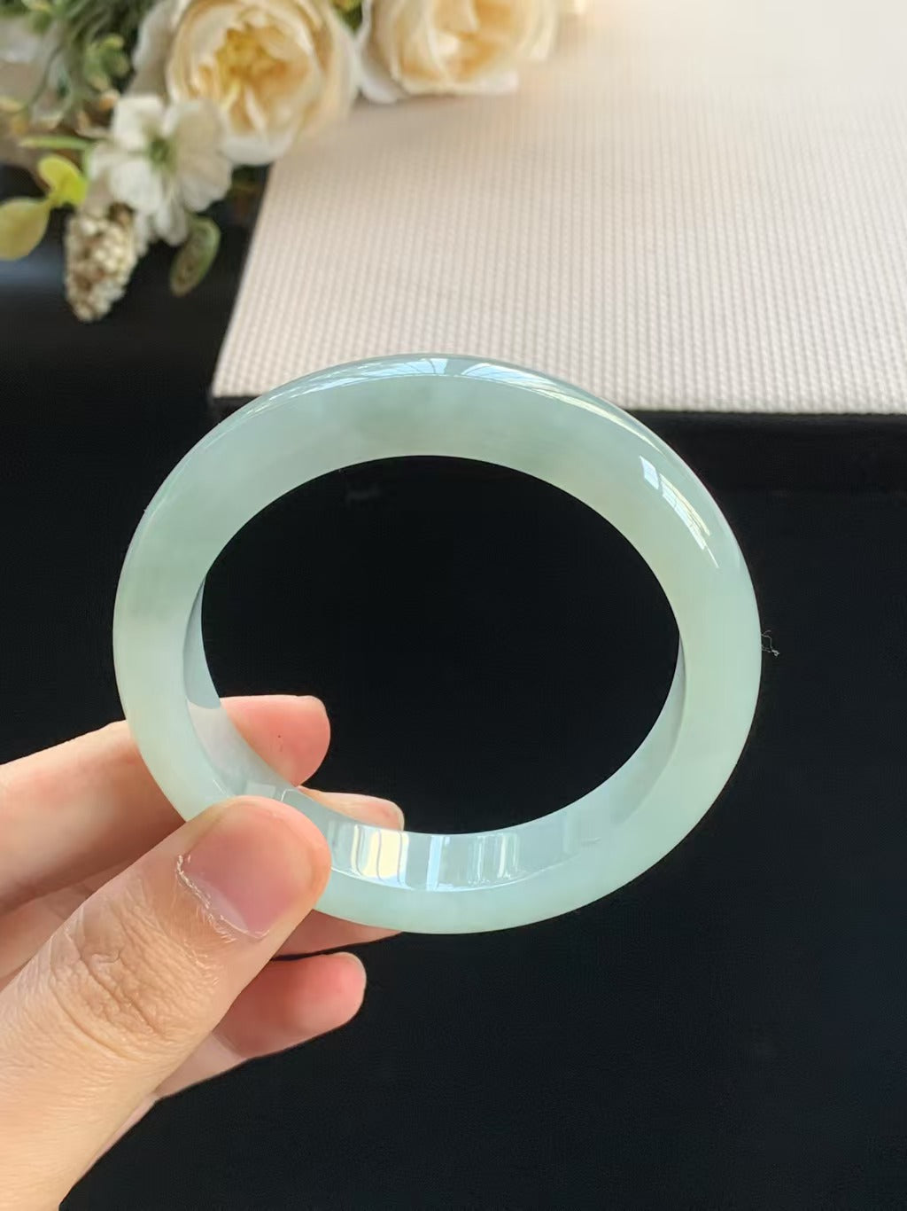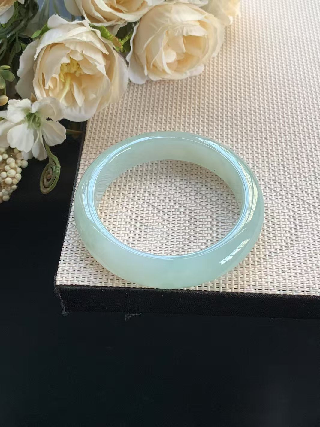 糯冰种晴水绿翡翠手镯正圈 尺寸56-13-8.8