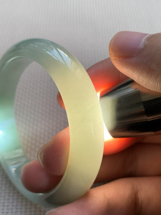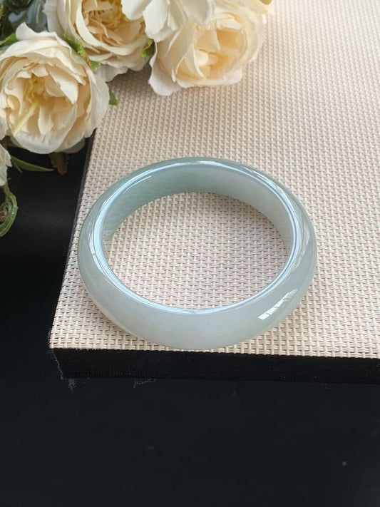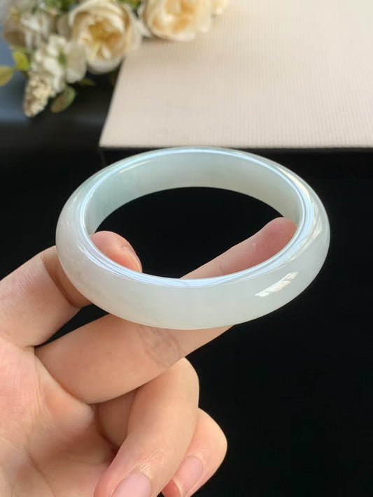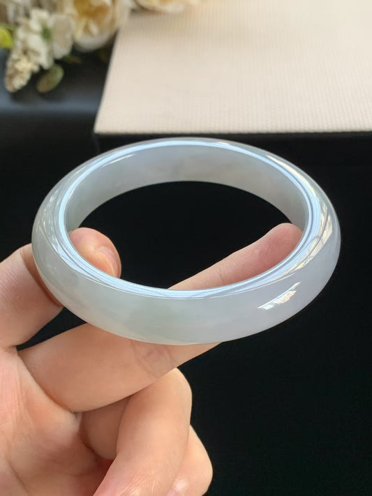 冰糯化 湖水蓝飘绿正圈翡翠手镯 尺寸57-12.5-8 完美
